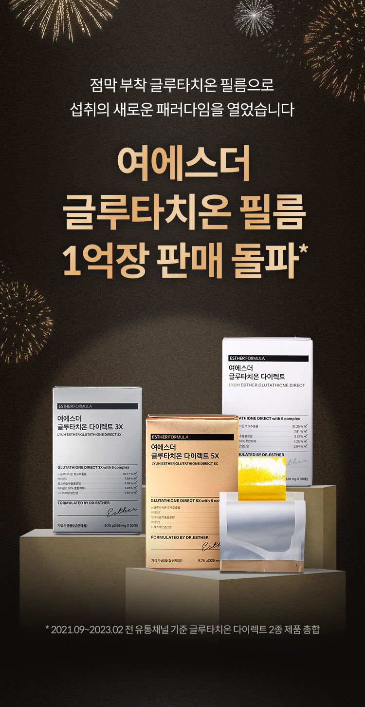 LYUH ESTHER Glutathione Direct 5X is a product that provides glutathione through an innovative mucosal-adhered oral dissolving film. It’s achieved substantial popularity, with sales exceeding 100 million units.