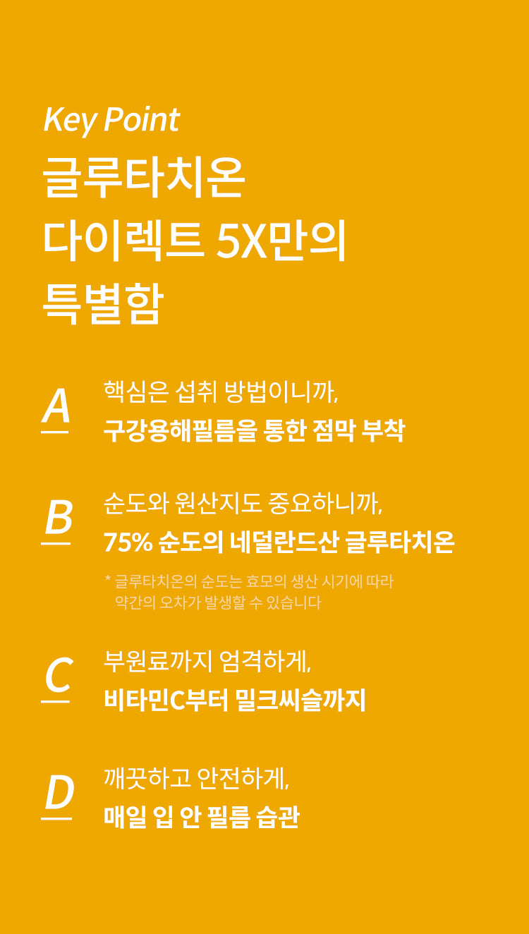 New Paradigm: Glutathione Direct 5X utilizes mucosal-adhered oral dissolving film for glutathione intake, offering an innovative method of consumption. This method has several advantages:
