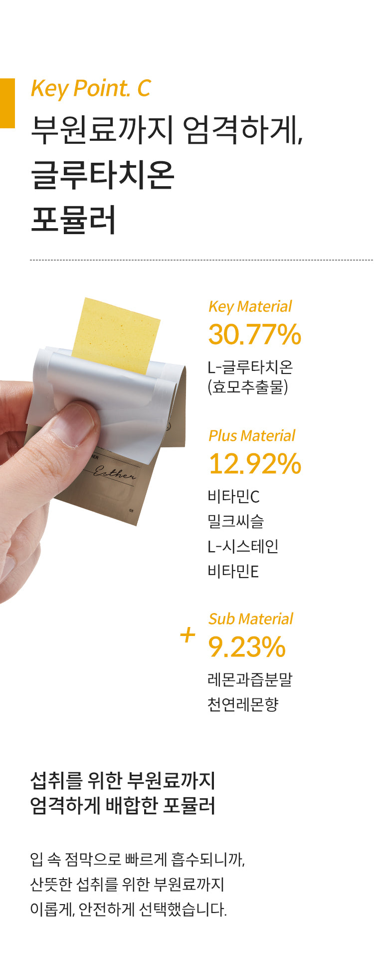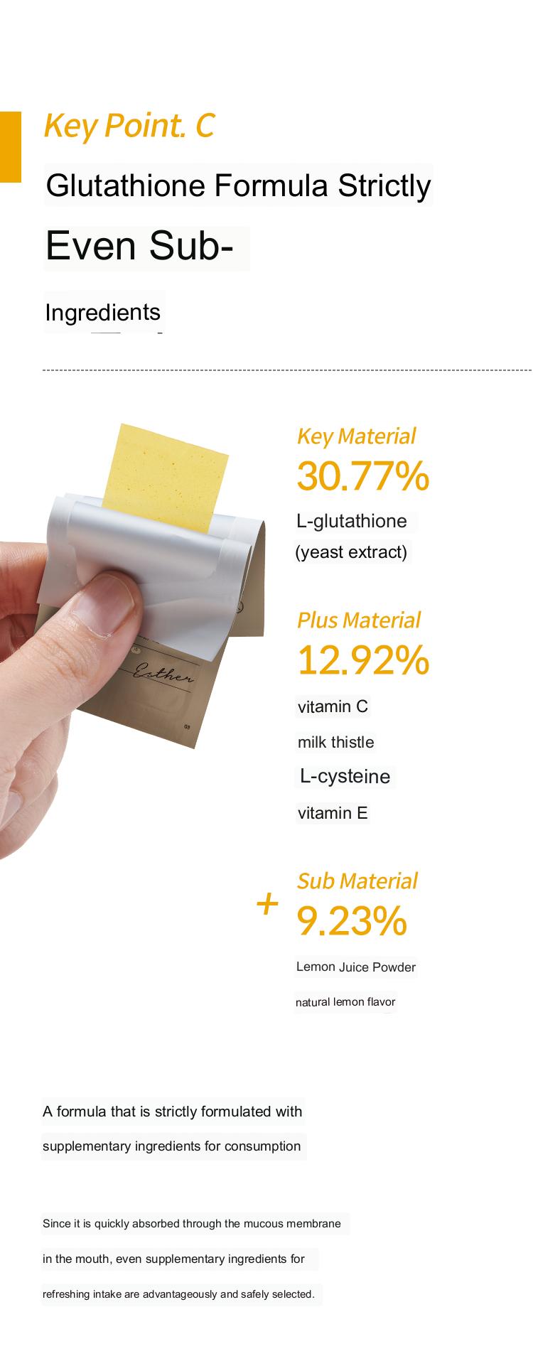 The product was designed by LYUH ESTHER, a Doctor of Preventive Medicine, to enhance the glutathione network in the body.