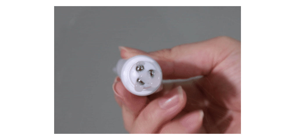 2. Gently massage areas that need care (around the eyes/mouth/neckline) with the triple ball applicator.