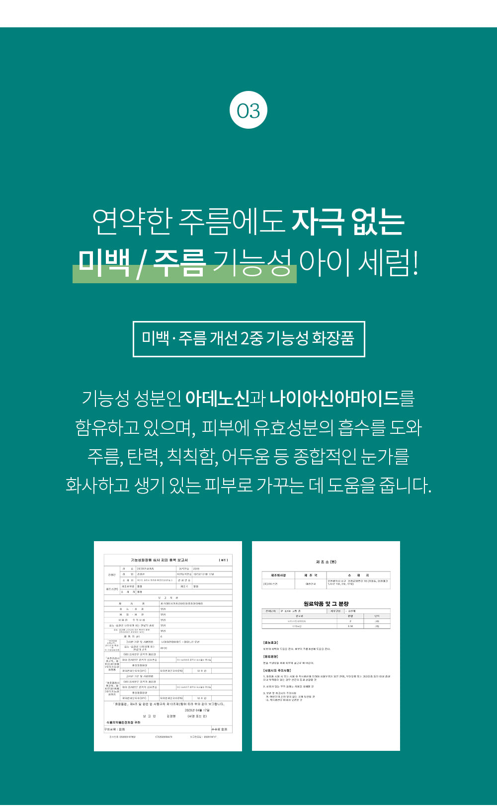It contains functional ingredients, adenosine and niacinamide, and helps the skin absorb active ingredients to help make the skin around the eyes bright and lively, including wrinkles, elasticity, dullness, and darkness.