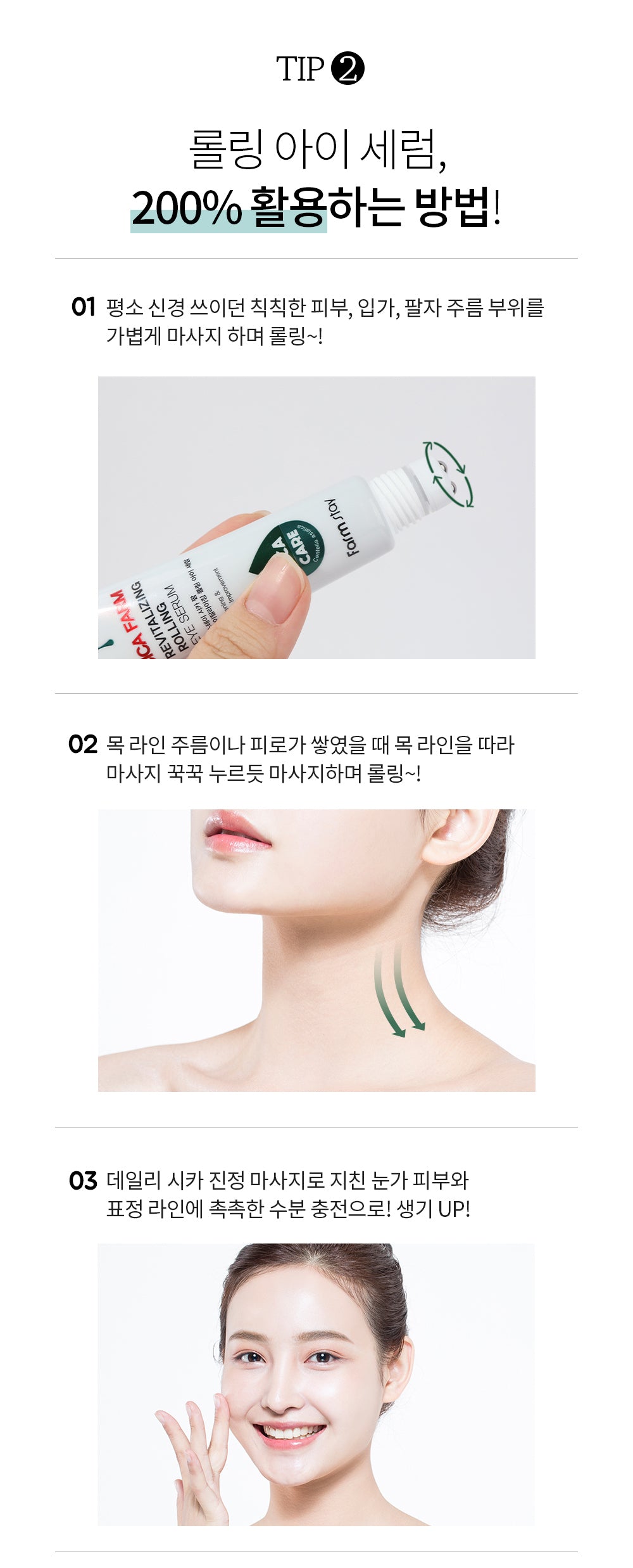 03 Replenishes moisture to tired skin around the eyes and expression lines with Daily Cica soothing massage! Vitality UP!