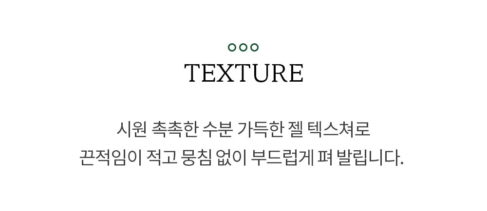 The gel texture is cool and moist, and it spreads smoothly without stickiness and clumping.