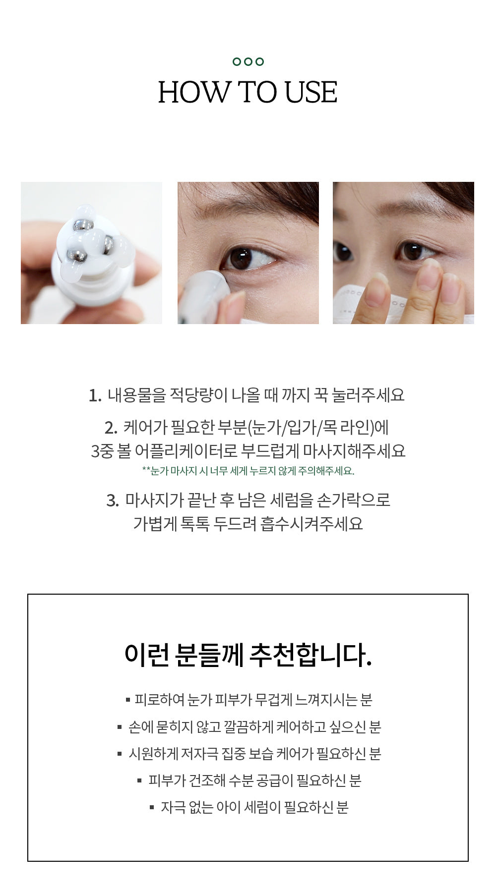 It is an eye serum integrated with three roller ball applicators that can be applied evenly even with a very small amount. The heat of the finger skin does not directly reach, so it is cooler and more hygienic by lowering the heat around the skin around the eyes.