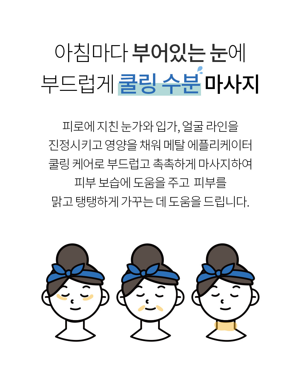 The metal applicator cooling care soothes and nourishes the tired eyes, mouth, and facial lines, and massages them softly and moistly to help moisturize the skin and make it clear and firm.