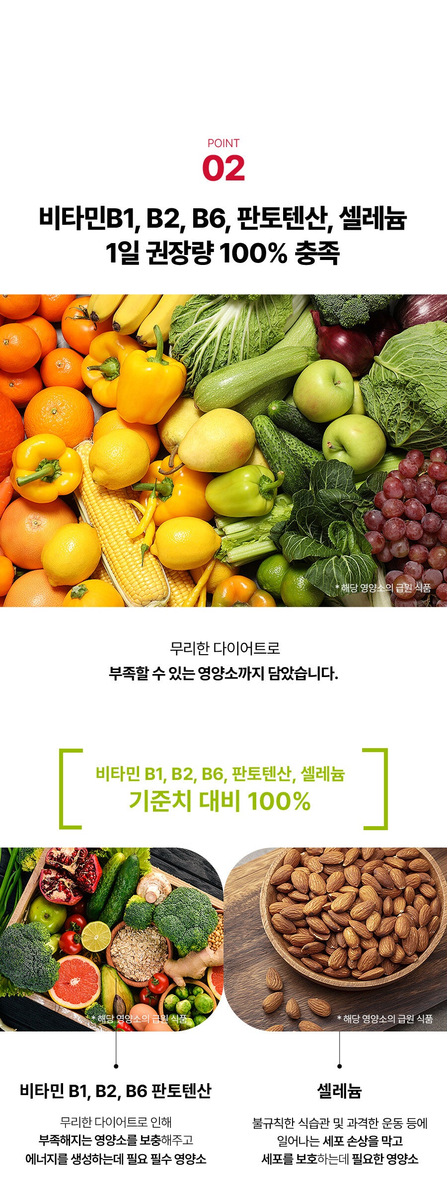 100% of vitamin B1, B2, B6, and selenium pantothenic acid standard
