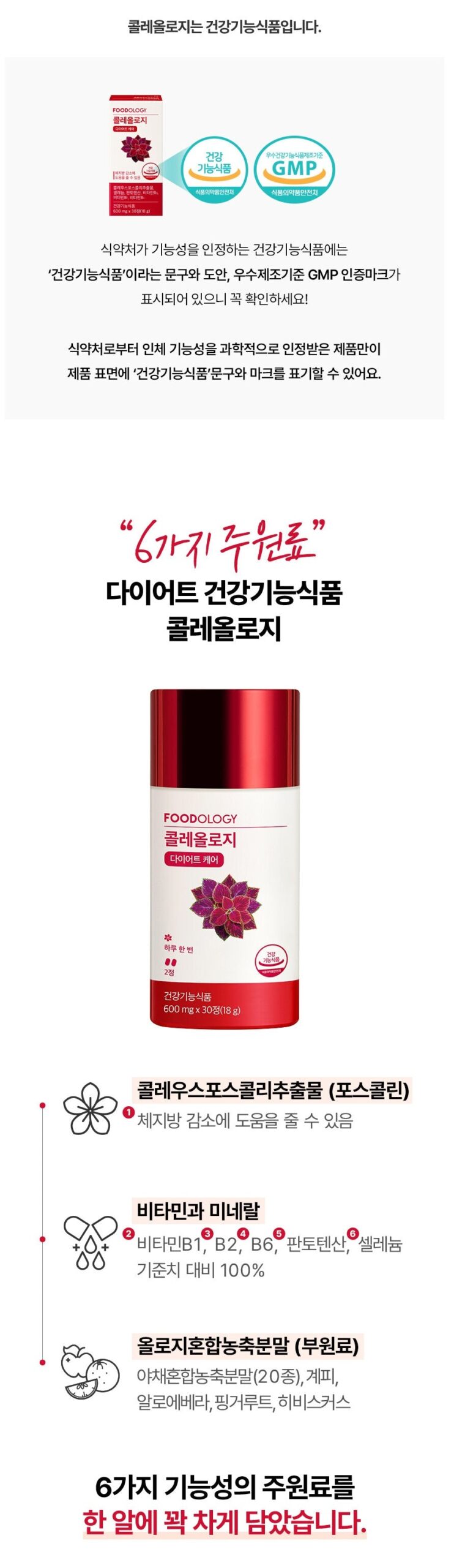 Foodology Coleology is a health functional food that has passed the evaluation of the Ministry of Food and Drug Safety, such as product safety and functionality, standards and specifications.