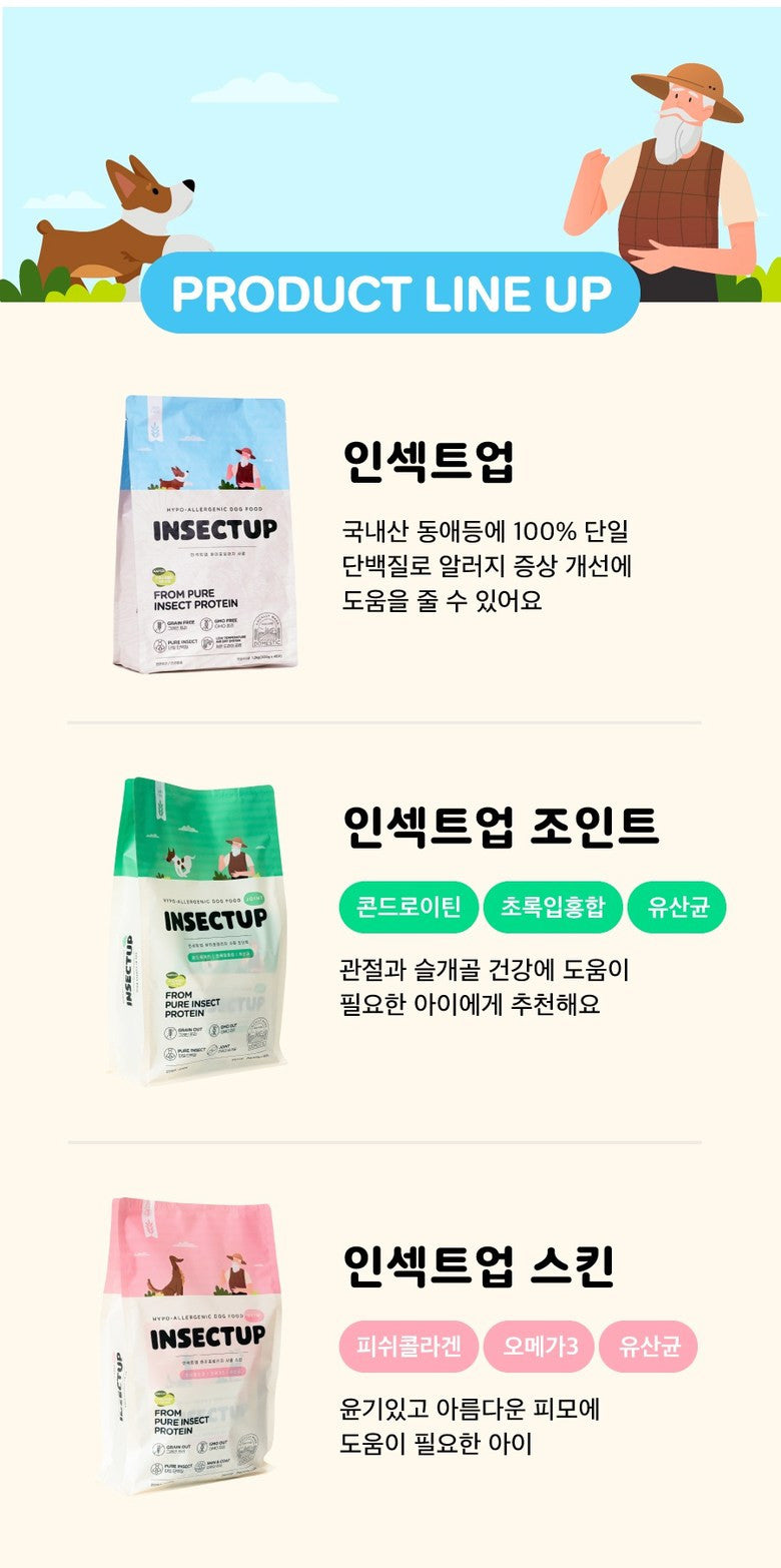 - INSETUP Skin: A blend of fish collagen, Omega 3, and lactic acid bacteria designed to promote a shiny and beautiful coat.