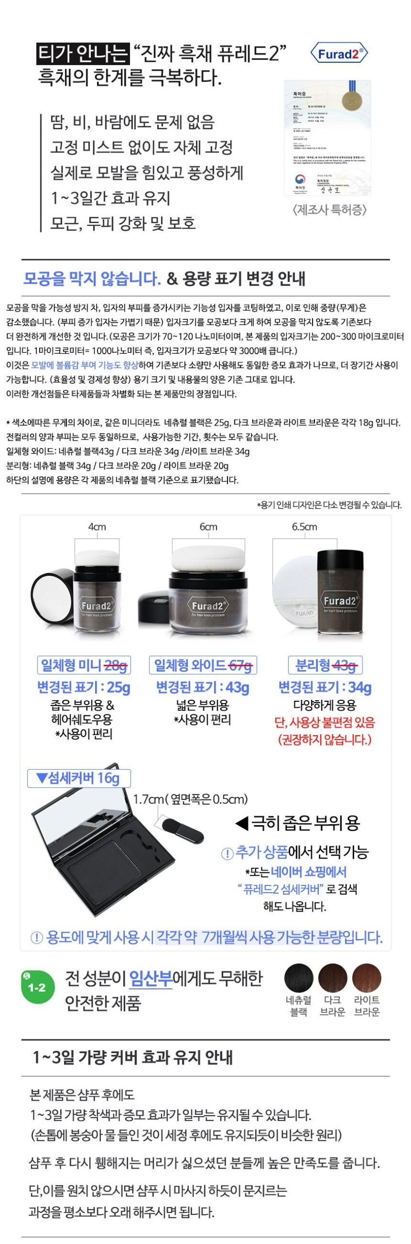 Having utilized the Furad2 Hair Loss Problem Cover, I was genuinely impressed with its performance. The self-fixing capability is remarkable; it held up through a drenching rain and sweat during my morning jog without any issues. The advanced particle technology truly sets this product apart—its pore-safe particles allowed for adequate coverage without clogging my scalp pores, which is essential for hair health. In just one application, I found that it provided lasting volume and kept my hair looking robust for almost three days! Plus, it’s easy to manage even in tighter spots due to its compact design—a clever innovation worth noting.