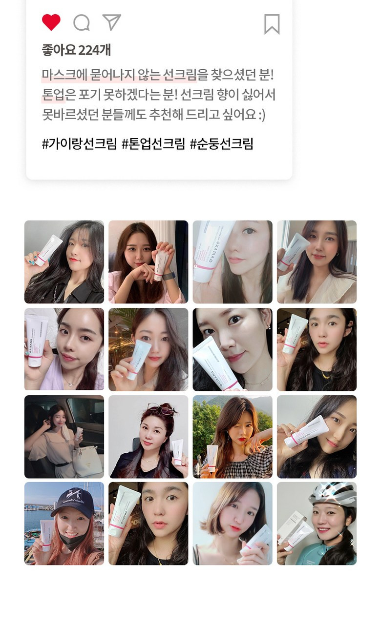 - HYUNNY01 (578 likes): “Soft and moist upon application, lightly adhering to the skin without any stickiness. The peach color naturally brightens the skin tone, providing a tone-up cover, and the finish is fantastic! #DailySuncream #CCSuncream #NonIrritatingSuncream”