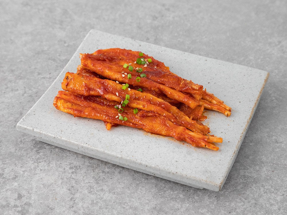 Seasoning: 2 tablespoons red pepper paste, 1 tablespoon starch syrup, 1 tablespoon sugar, 1 tablespoon cooking wine, 1 tablespoon chopped green onion, 1 teaspoon minced garlic, 1/2 teaspoon sesame oil