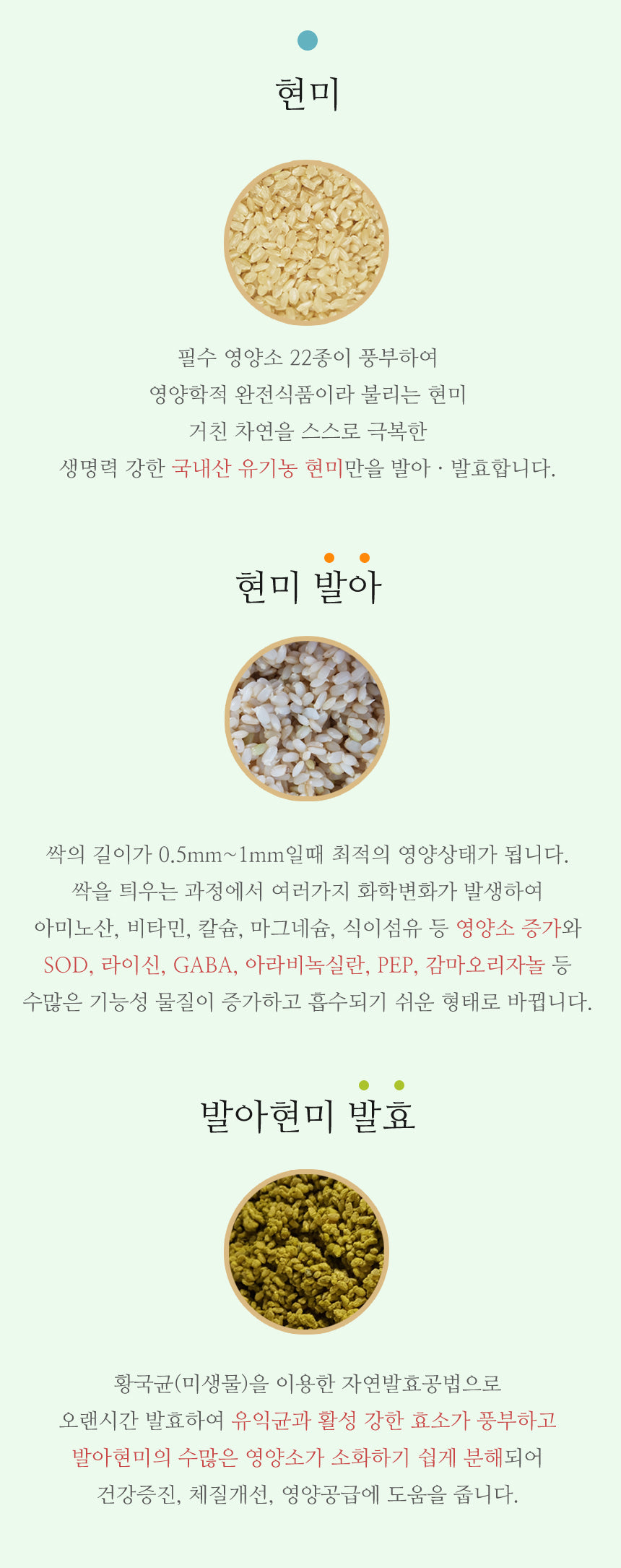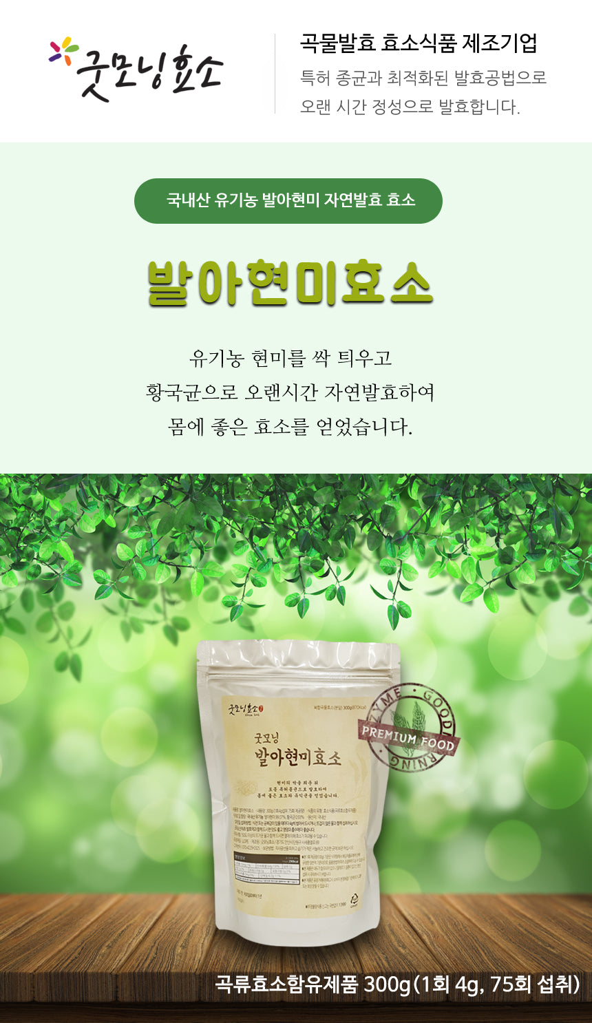 It is fermented for a long time with a natural fermentation method using Hwanggukgyun (microorganism, Aspergillus oryzae N041), which is rich in beneficial bacteria and active enzymes, and numerous nutrients of germinated brown rice are easily digested and decomposed to help improve health, improve constitution, and supply nutrients.