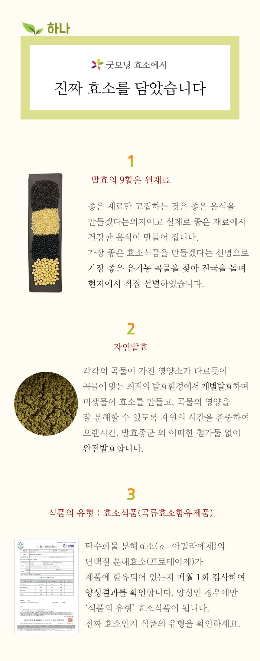 Sticking to only good ingredients is the will to make good food, and actually healthy food is made from good ingredients. With the belief that we will make the best enzyme food, we traveled all over the country in search of the best organic grains and selected them locally.