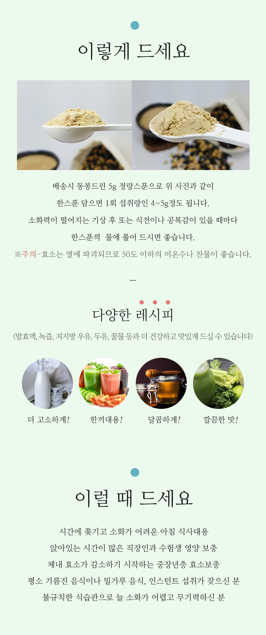 A substitute for breakfast that is pressed for time and difficult to digest Nutritional supplementation for office workers and students who spend a lot of time sitting down Enzyme supplementation for middle-aged people whose enzymes in the body are starting to decrease Those who frequently consume greasy or floury foods or instant instant meals.