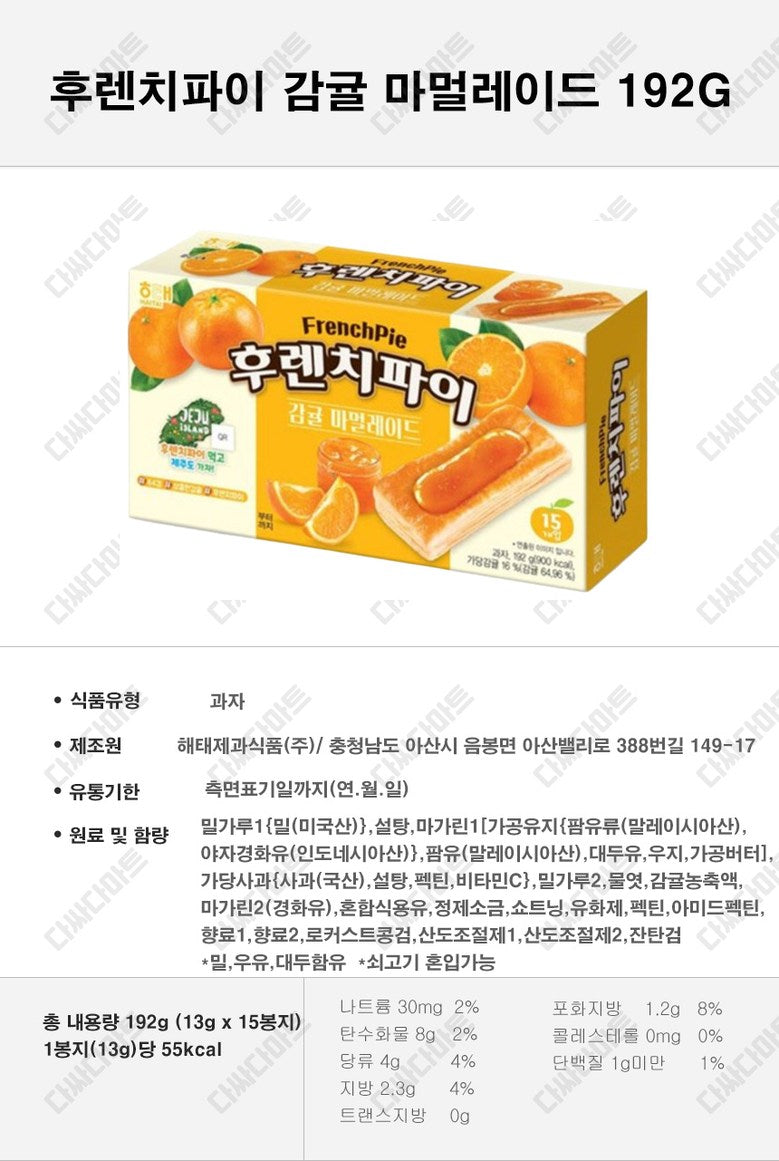This product is produced with care by Haitai Confectionery Food Co., Ltd., located at 149-17, Asan Valley-ro 388beon-gil, Eumbong-myeon, Asan-si, Chungcheongnam-do. It contains wheat, milk, soybeans and may contain traces of beef, catering to a wide array of dietary preferences.