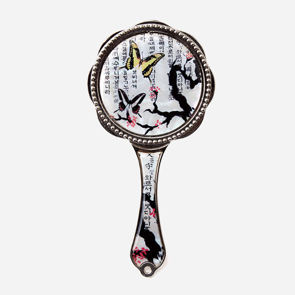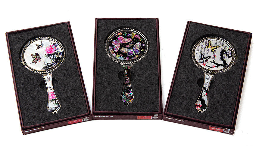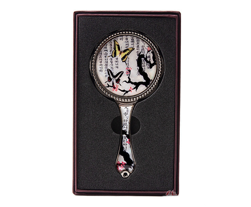 * Hand Mirror With Beautiful Mother Of Pearl Handle, Mother Of Pearl Handle Mirror – Plum Butterfly / Made in Korea
