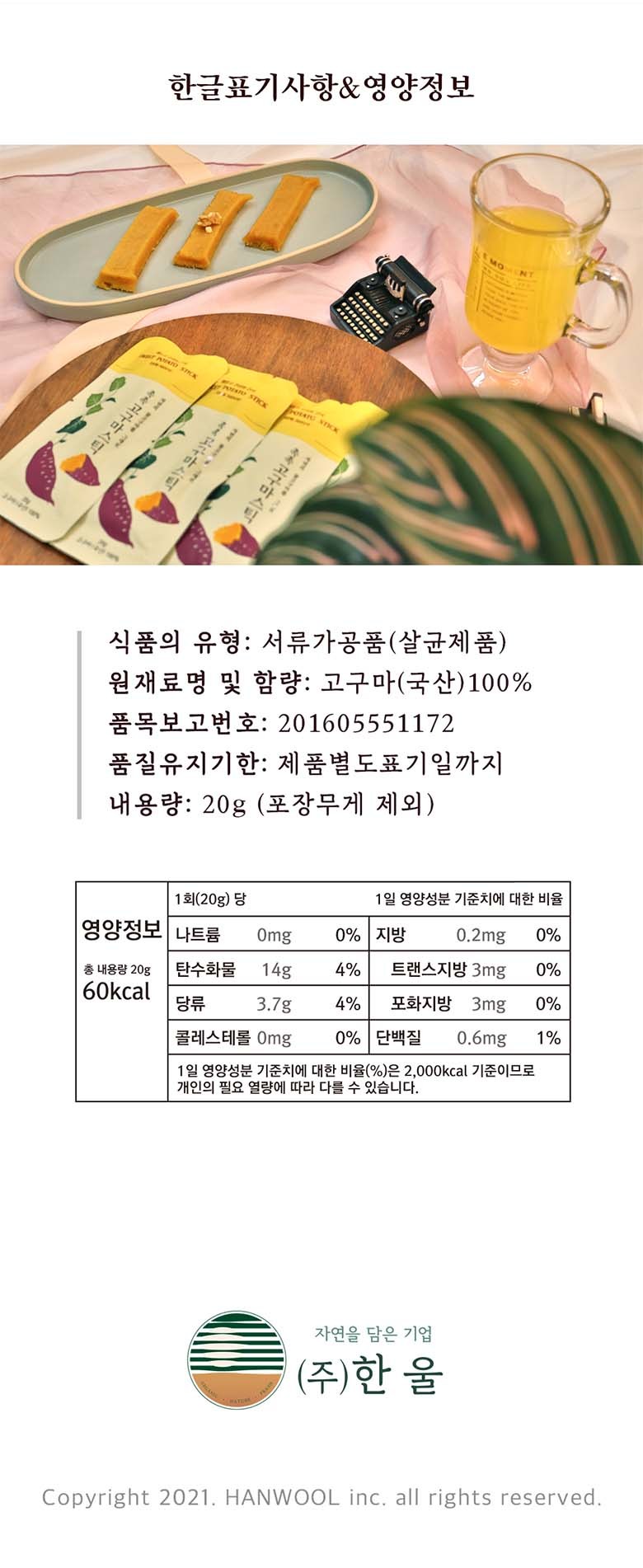 Hanul embraces the essence of nature in every product. We ensure that nothing but 100% domestic sweet potatoes are used in our Moist Sweet Potato Mastic Stick. Our commitment to quality and natural ingredients stands as the cornerstone of our brand.
