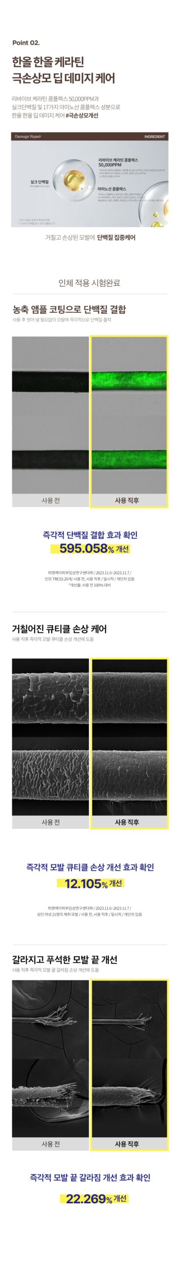 Human application testing has confirmed a 595.058% improvement in protein binding, offering an immediate remedy to cuticle damage and split ends. Our formula instantly adsorbs protein, requiring no rinse-off, and improves hair’s overall condition.