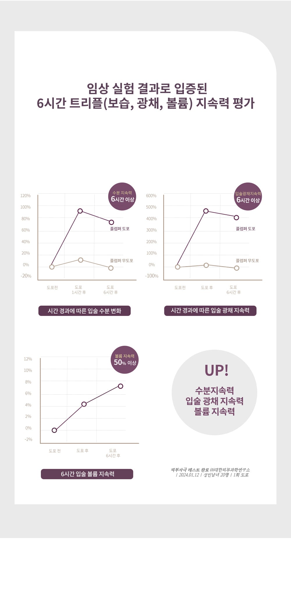 Our lip coat not only adds a radiant glow but also locks in moisture for up to six hours. Its triple action formula—moisturizing, glowing, and volumizing—is clinically proven to maintain plumpness and hydration over time.