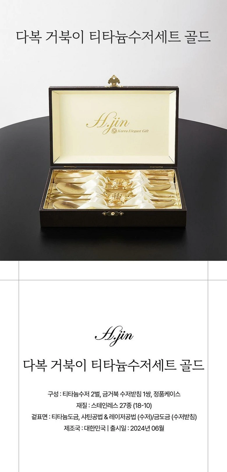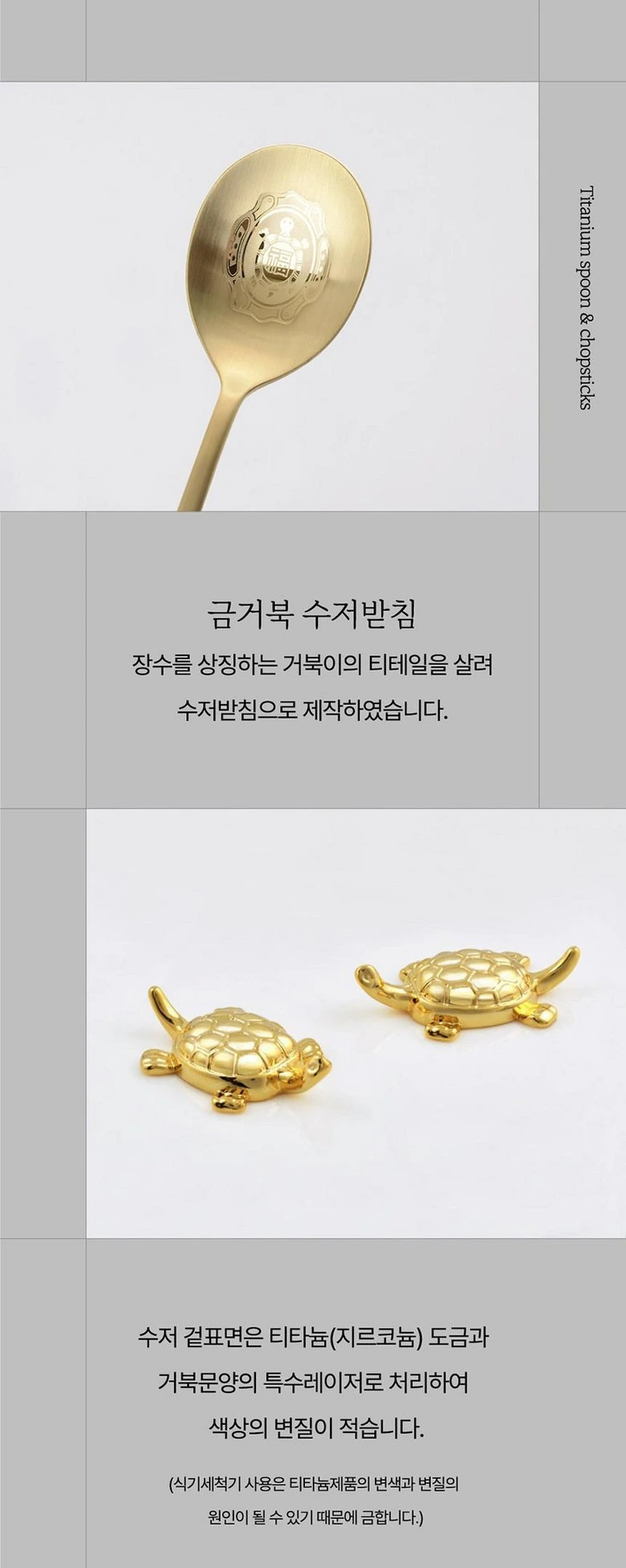 The H.jin Turtle Titanium Couple Spoon Set is crafted for elegance and durability. Unlike standard titanium spoons, these spoons are plated with gold titanium, offering a refined weight and a luxurious golden sheen—similar to the “ALL GOLD Spoon” series.