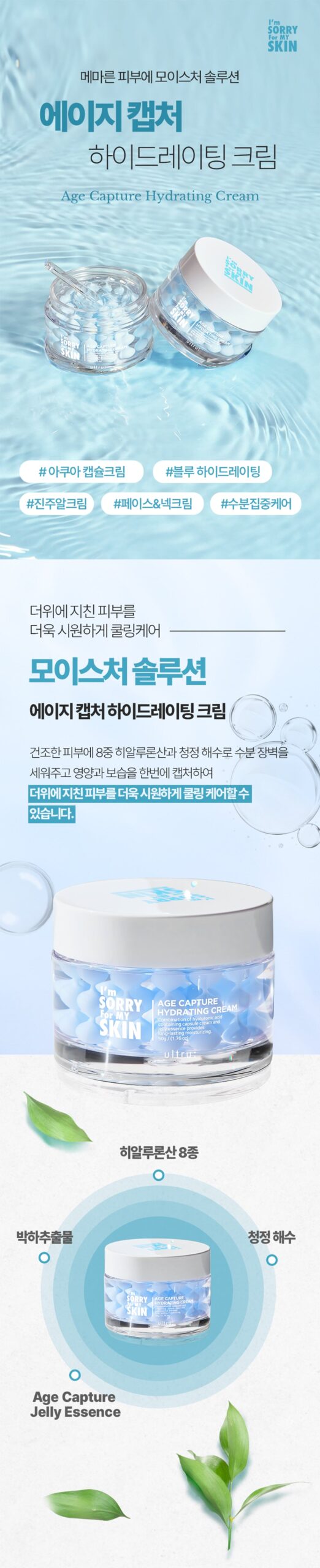 Experience a refreshing escape for your skin with ‘I’m Sorry For My Skin Age Capture Hydrating Cream’. This unique 50g cream offers cooling care, perfect for skin fatigued by heat and daily stressors.