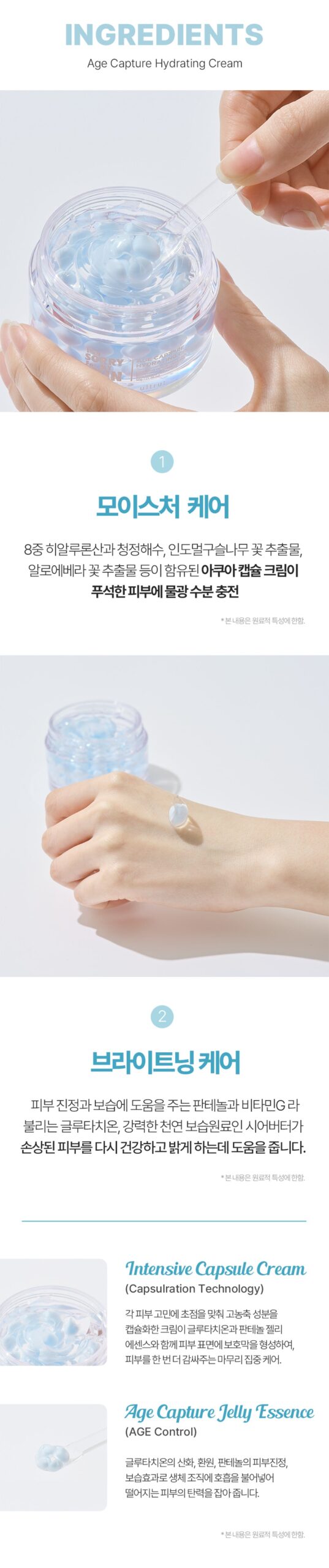 Upon application, the capsules and Age Capture Jelly Essence burst gently, soothing sensitive skin. They build up moisture, leaving your skin healthy and nourished.