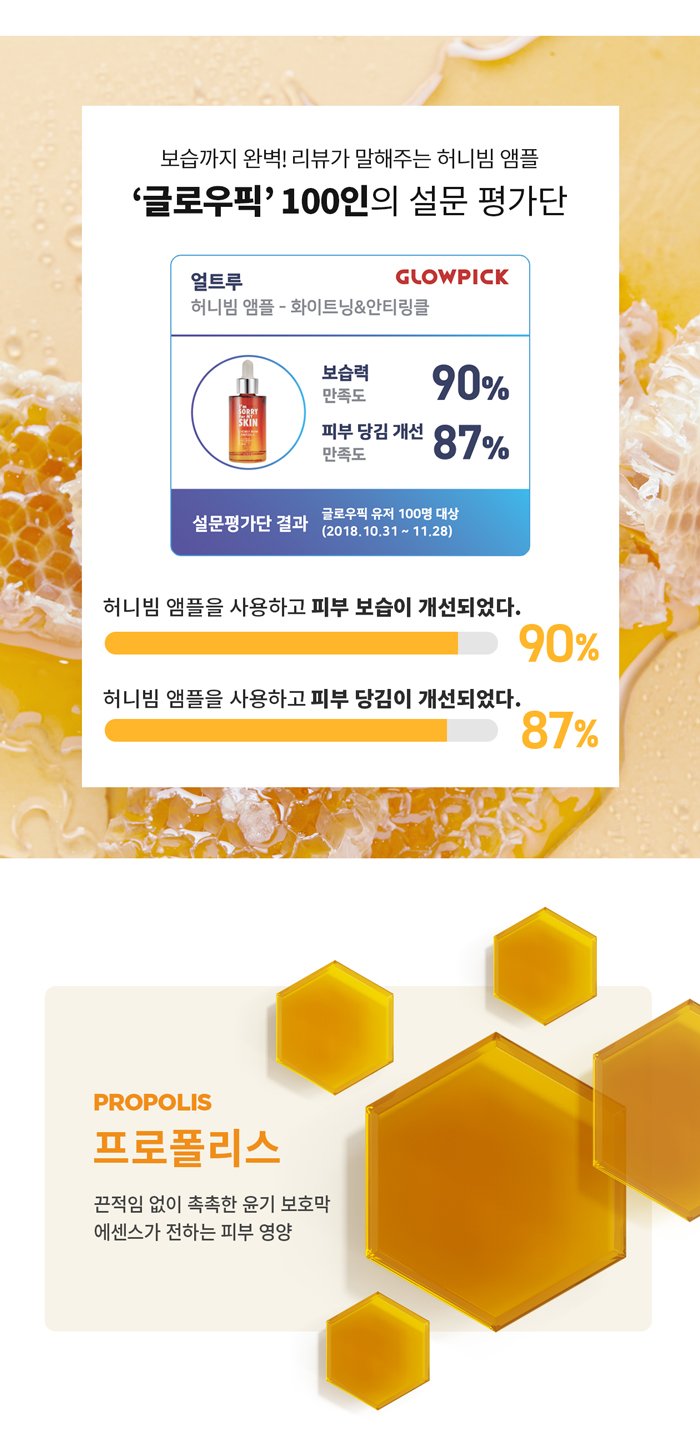 Propolis plays a crucial role in the ampoule, delivering skin nutrition through a non-sticky, moisturizing essence. This creates a protective film on the skin, ensuring long-lasting hydration and care.