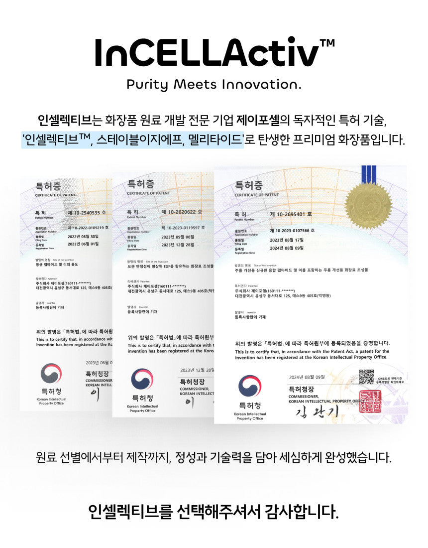 Harness the power of cell-activating peptide technology to rejuvenate and energize your skin from within. This advanced formulation features InCELLActiv™, StableEGF, and Melitide, pioneering innovations developed by J-Forcell, a leader in cosmetic raw material technology.