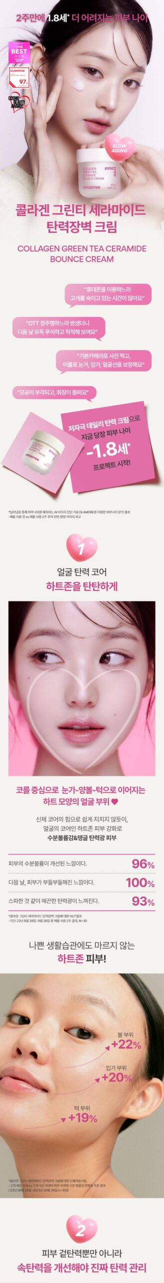 As you enter your late 20s, your skin requires more than just basic moisturizing. The Innisfree Collagen Green Tea Ceramide Bounce Cream is specifically formulated for those who find standard moisturizing creams insufficient and heavy anti-aging creams too greasy and sticky.