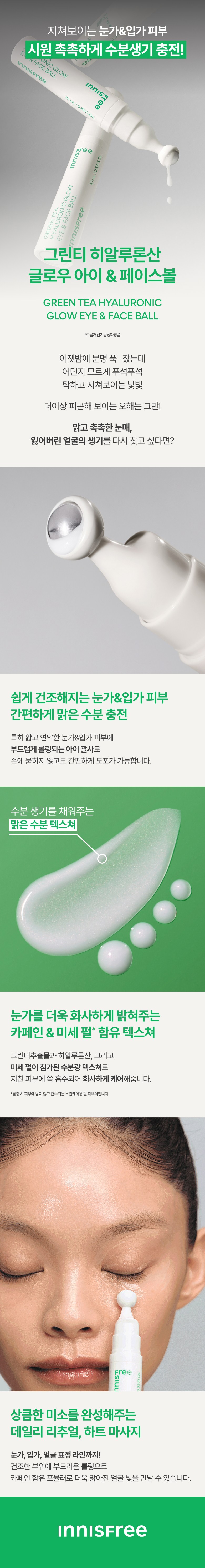 So I got my hands on this innisfree Green Tea Hyaluronic Glow Eye & Face Ball, and honestly, I’m pretty impressed! The cooling roller ball is a game-changer; it feels so nice on tired skin after a long day. You can really tell it’s well-made too—the craftsmanship with that thick glass bottle gives it a touch of luxury without being overly flashy. Plus, the blend of ingredients like hyaluronic acid keeps everything hydrated beautifully; no more dry patches or pesky fine lines around my eyes. I’ve been using it daily for about two weeks now, and I can genuinely see improvements in both puffiness and hydration. Definitely worth trying out if you’re looking to treat yourself to something effective yet durable!
