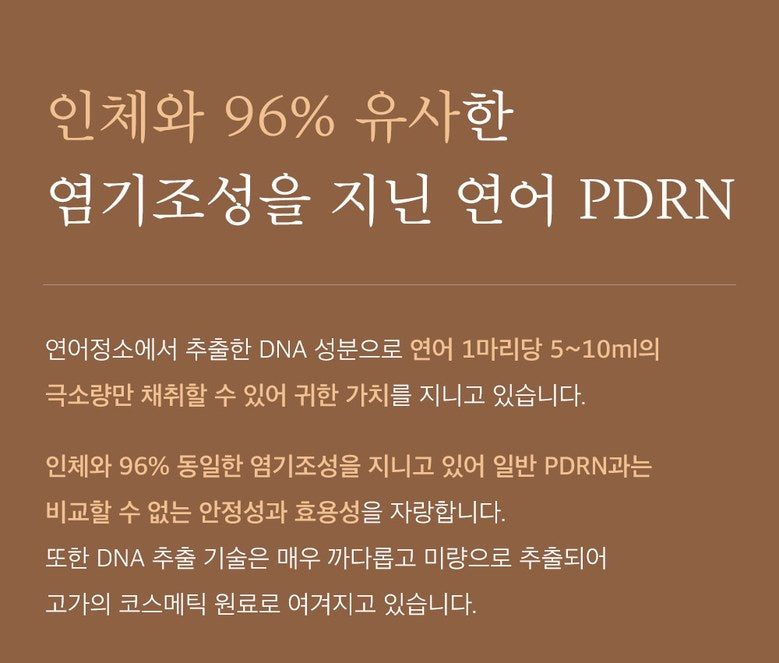 It has a base composition that is 96% identical to that of the human body, boasting stability and effectiveness that are incomparable to regular PDRN. In addition, DNA extraction technology is very difficult and is extracted in trace amounts, making it an expensive cosmetic raw material.