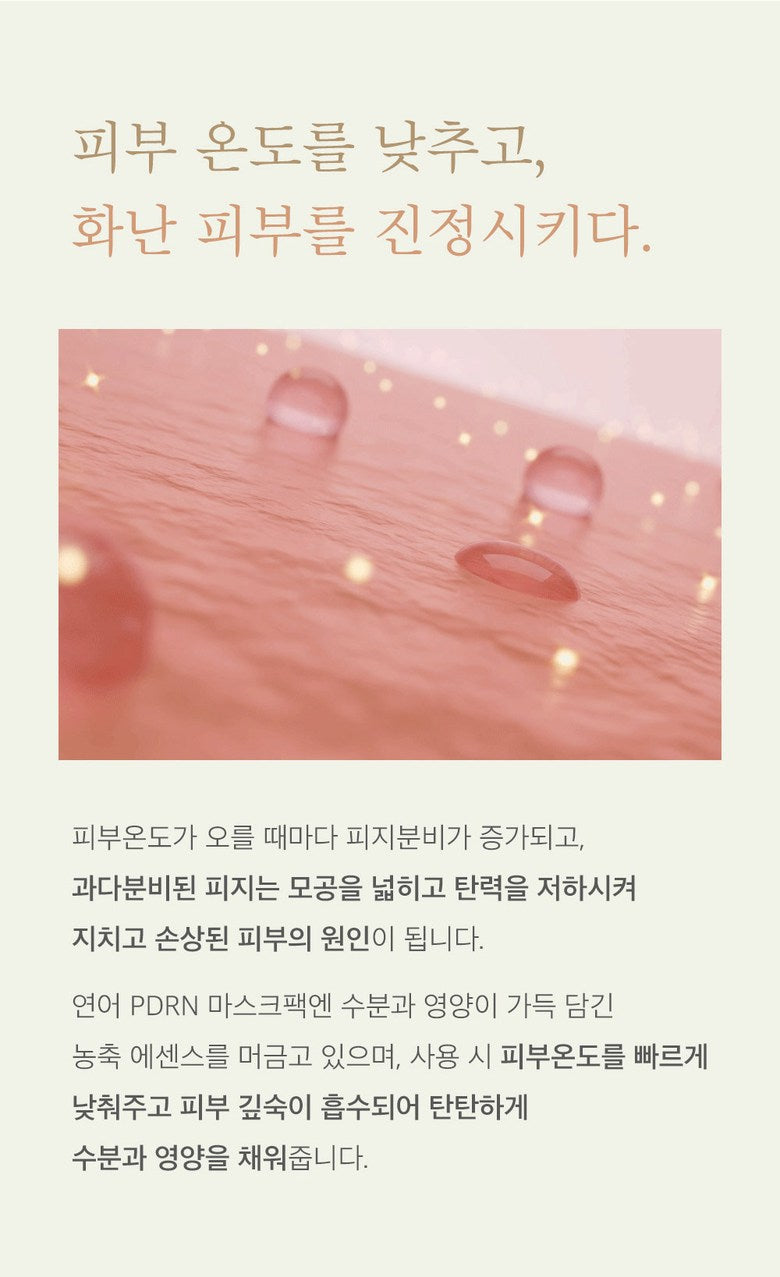 The salmon PDRN mask pack contains concentrated essence full of moisture and nutrients. When used, it quickly lowers skin temperature and is absorbed deep into the skin, making it firm.