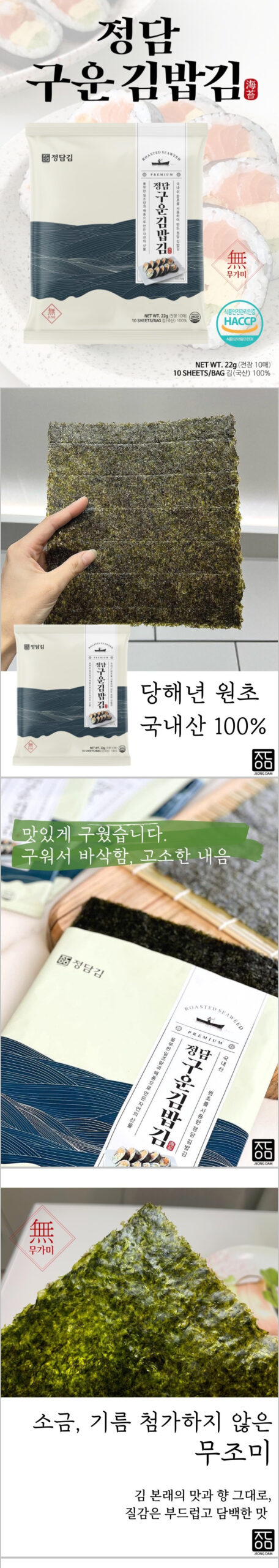 - Pure Taste: Unseasoned and free from added salt or oil, Jeongdam Kim allows the natural, subtle flavors of seaweed to shine through. The texture is soft yet crisp, ensuring a pleasurable eating experience without any unpleasant odors.