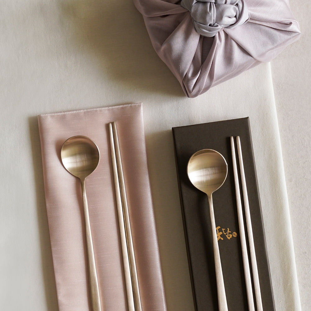 Experience the elegance of traditional Korean craftsmanship with this premium Bangjja Yugi spoon and chopstick set. Hand-forged using a precise alloy of 78% copper and 22% tin, this set exemplifies durability and antimicrobial properties. The modern hot forging technique ensures a sturdy build, making it a timeless addition to any table setting.