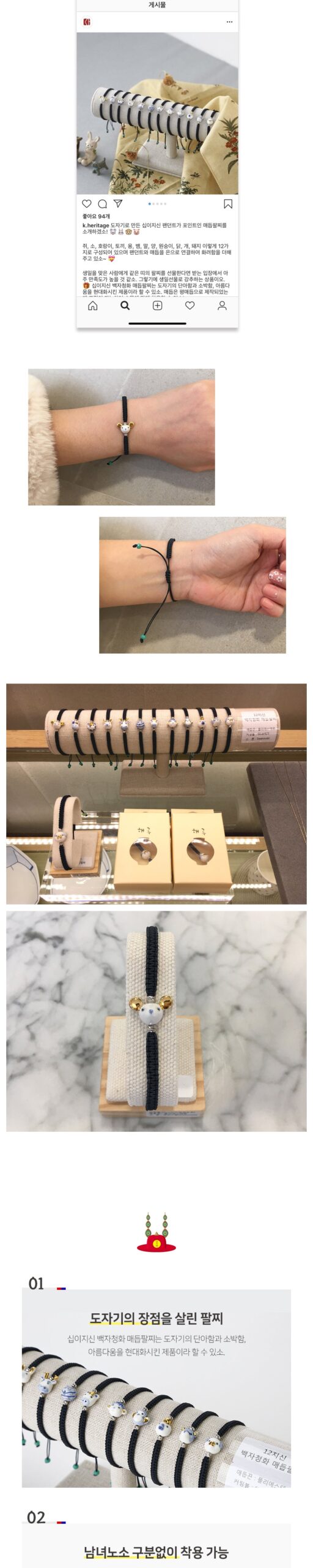 I recently got my hands on this K-Heritage Twelve Zodiac Signs Cheonghwa Baekja Knot Bracelet, and let me tell ya, the porcelain pendant just blows my mind! The detail is astounding. Each zodiac animal comes to life with such vibrant artistry that I catch myself staring at it every time I wear it. As someone who appreciates handmade craftsmanship, it’s clear a lot of love went into making this piece. It really tells a story—wearing something that symbolizes ancient tradition while looking super stylish? It’s like wearing a piece of history right on your wrist!