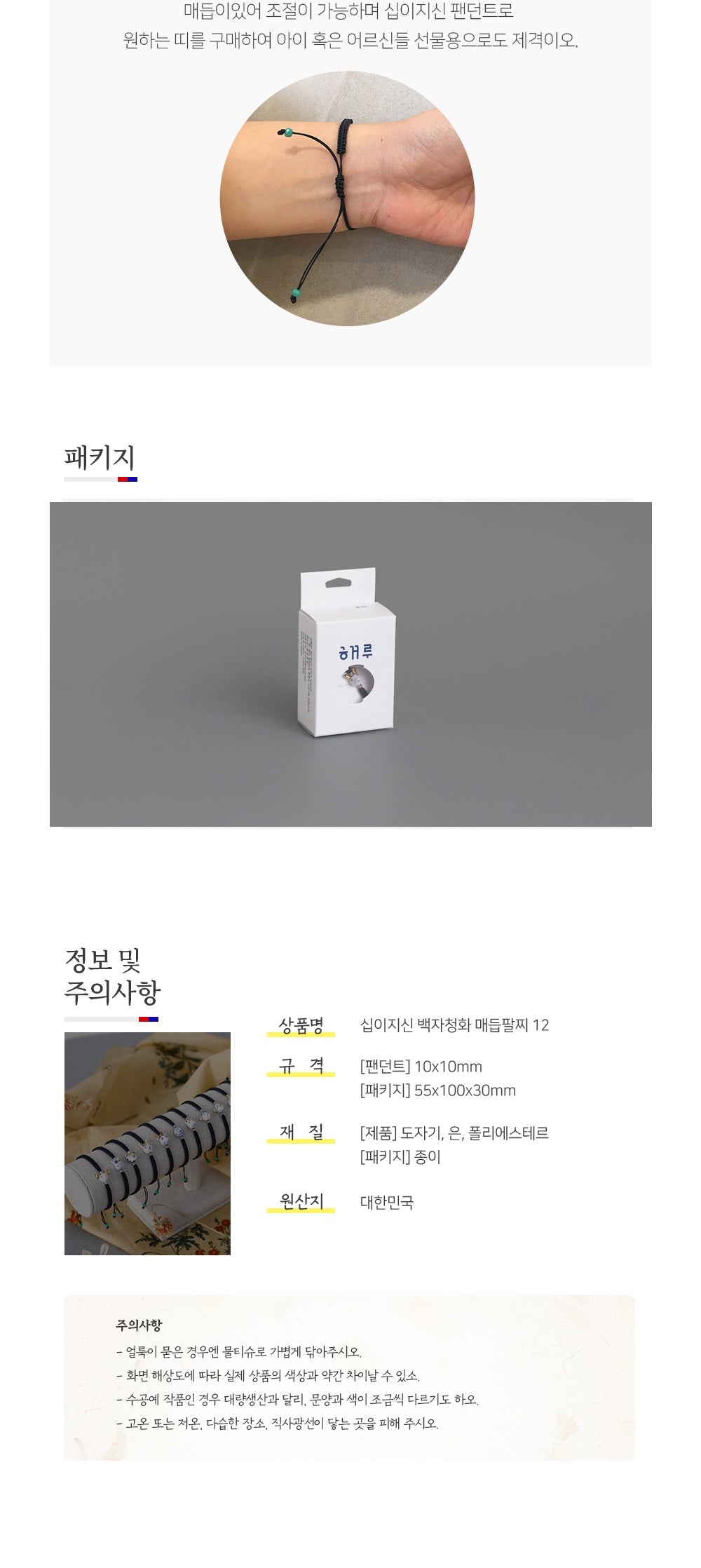 I recently got my hands on this K-Heritage Twelve Zodiac Signs Cheonghwa Baekja Knot Bracelet, and let me tell ya, the porcelain pendant just blows my mind! The detail is astounding. Each zodiac animal comes to life with such vibrant artistry that I catch myself staring at it every time I wear it. As someone who appreciates handmade craftsmanship, it’s clear a lot of love went into making this piece. It really tells a story—wearing something that symbolizes ancient tradition while looking super stylish? It’s like wearing a piece of history right on your wrist!
