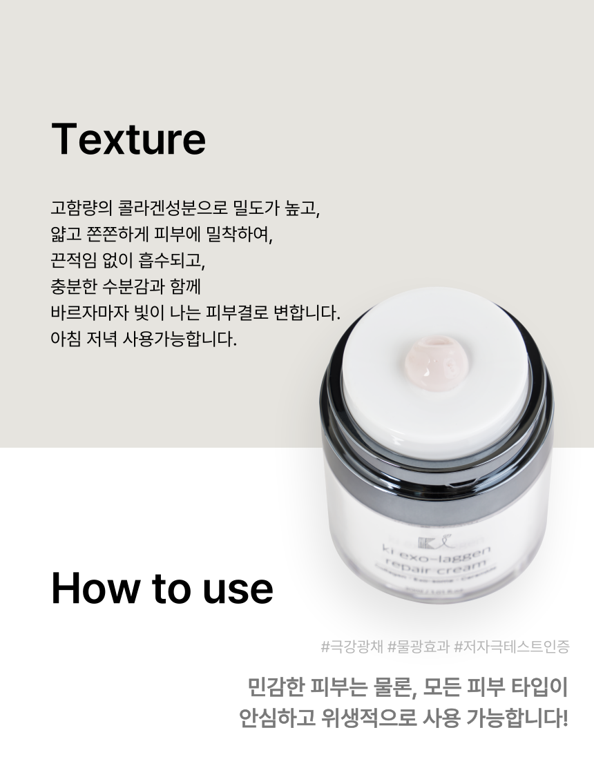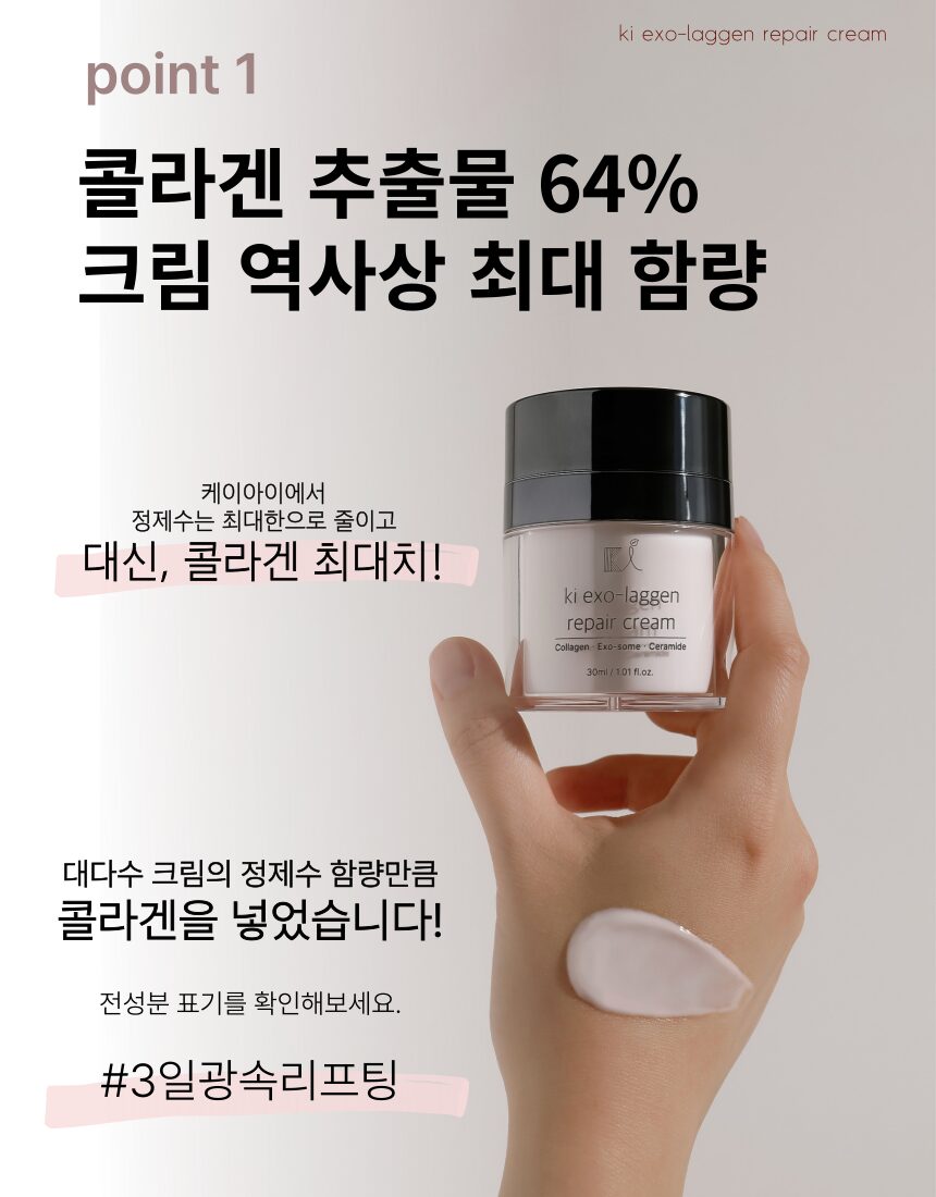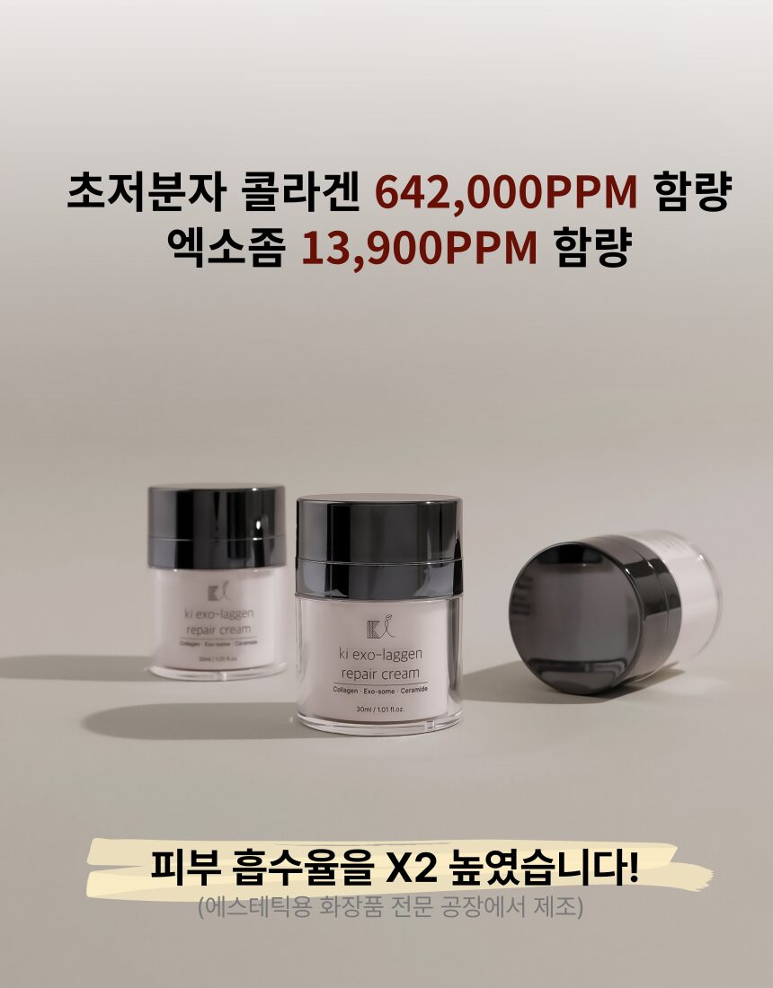 Transform your skincare routine with KI Exo-Laggen Repair Cream, a premium aesthetic-grade cream enriched with ultra-low molecular weight collagen and high-concentration exosomes for rapid absorption and visible results. Unlike conventional creams that use purified water as a base, KI replaces it with a groundbreaking 64% collagen content, ensuring unparalleled nourishment and skin affinity.
