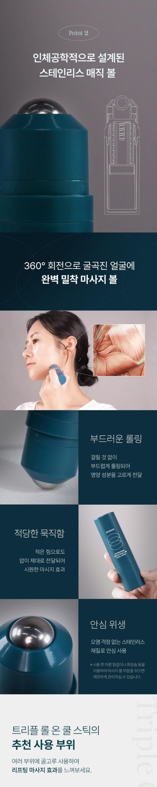 Use it evenly on various areas to feel the lifting massage effect.