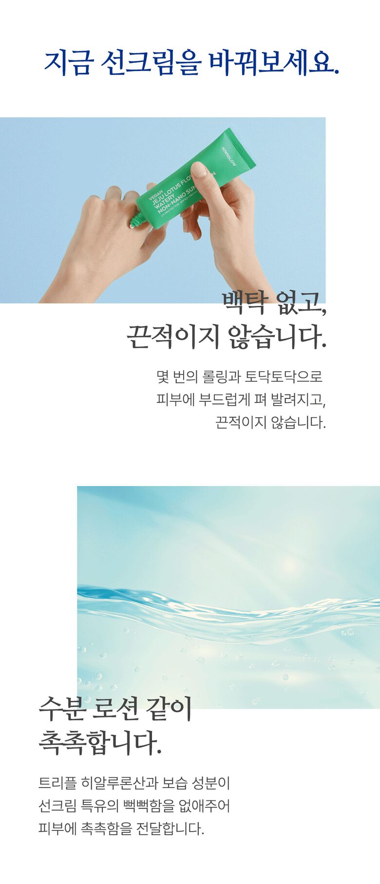 - Dense Protection: The non-nano particles in KIWIGLOW Vegan Jeju Lotus Watery Inorganic Non-nano Sun Cream are meticulously sized (0.00% under 100 mm) to provide tight UV ray blockage while being safe for the skin.