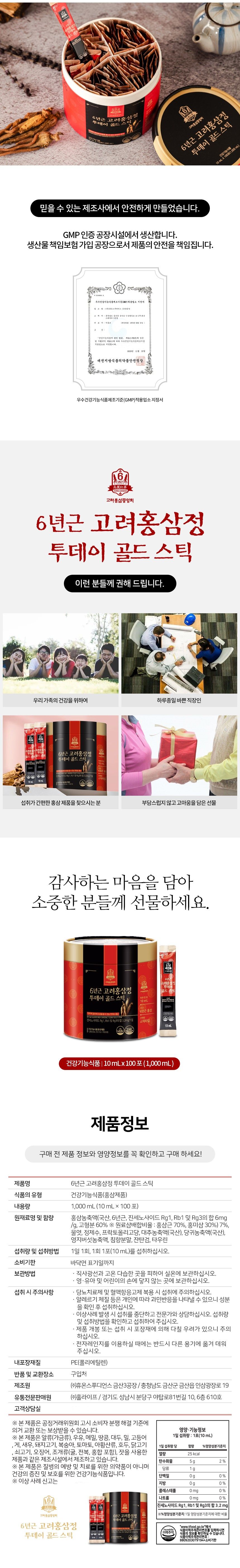 - Age: Each Today Gold Stick contains 6-year-old Korean red ginseng extract.