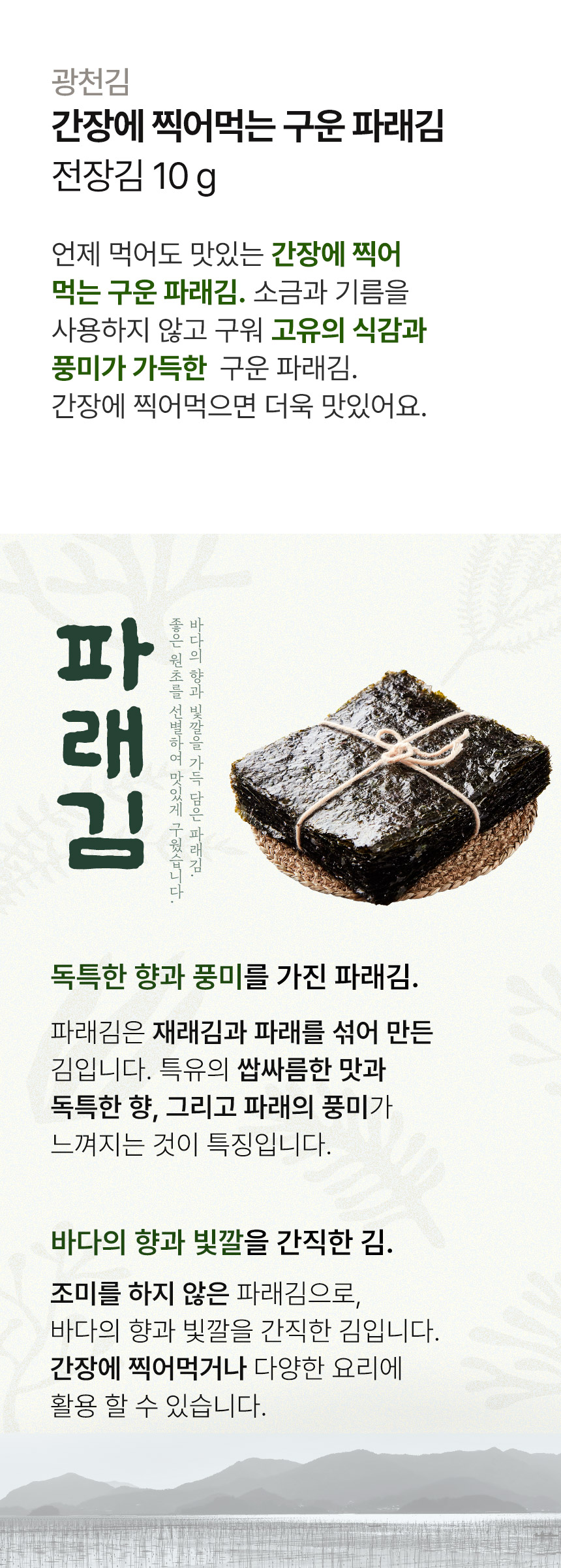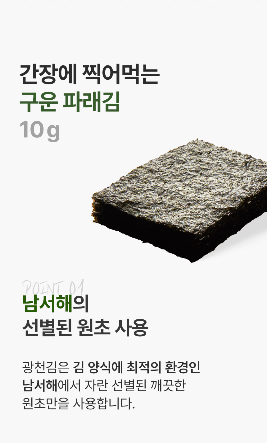 Indulge in the authentic taste of the sea with Gwangcheon Kim’s Roasted Green Seaweed, meticulously selected and roasted to perfection. Our seaweed is sourced from the pristine Southwest Sea, renowned for its clear waters and optimal seaweed farming conditions. This ensures a product that’s not only delicious but also retains the natural aroma and flavor of the sea.