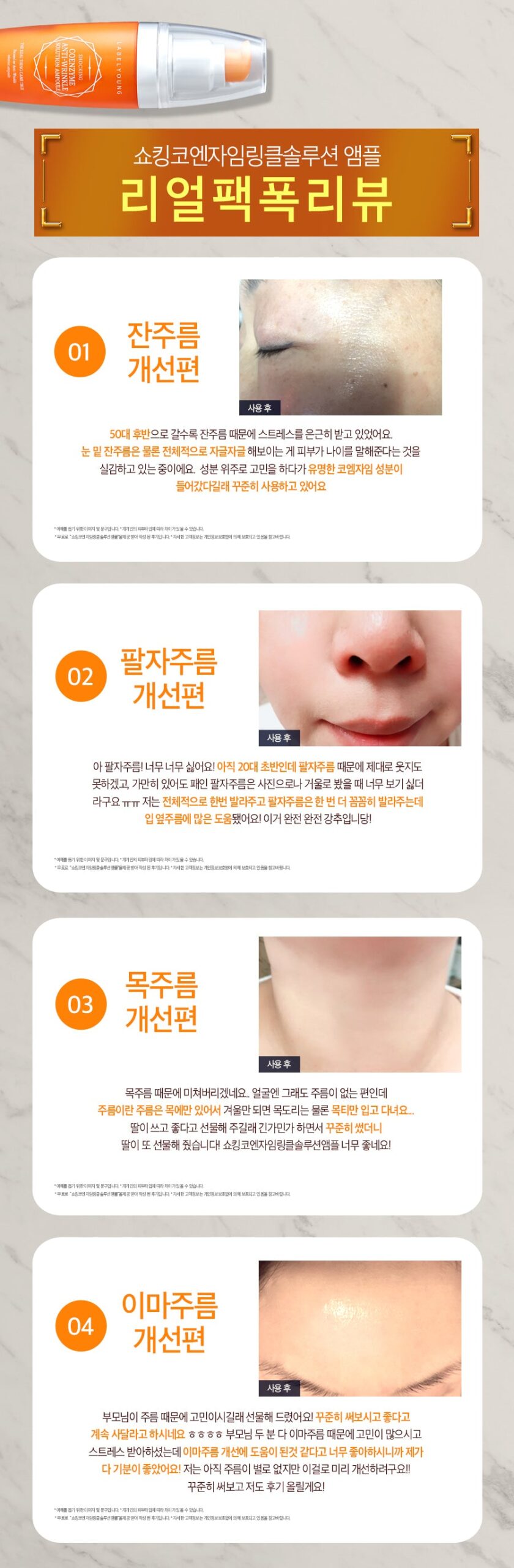 He probado el ampoule de coenzima Q10 y no puedo estar más feliz. Mis arrugas han disminuido, siento que mi piel revive cada día.