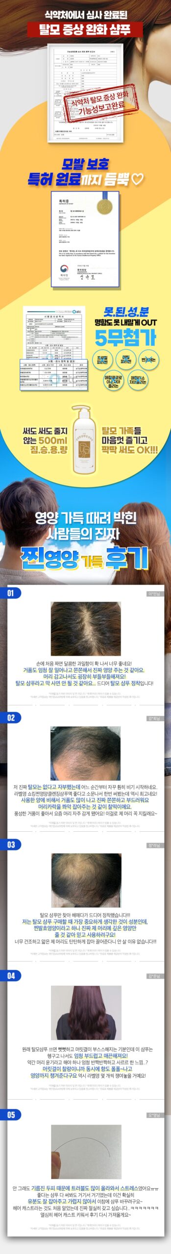 Hair loss symptom relief shampoo approved by the Korean Food and Drug Administration.
