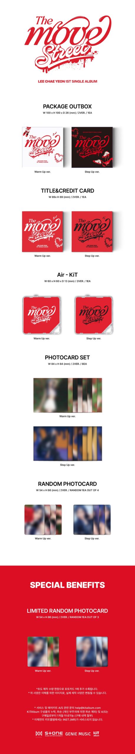 Experience Lee Chae-yeon’s dynamic first single album, The Move: Street, in the innovative Kit version! This special 2 Kinds SET delivers a unique way to enjoy her music and collect exclusive merch. Please note: This product does not include a CD.