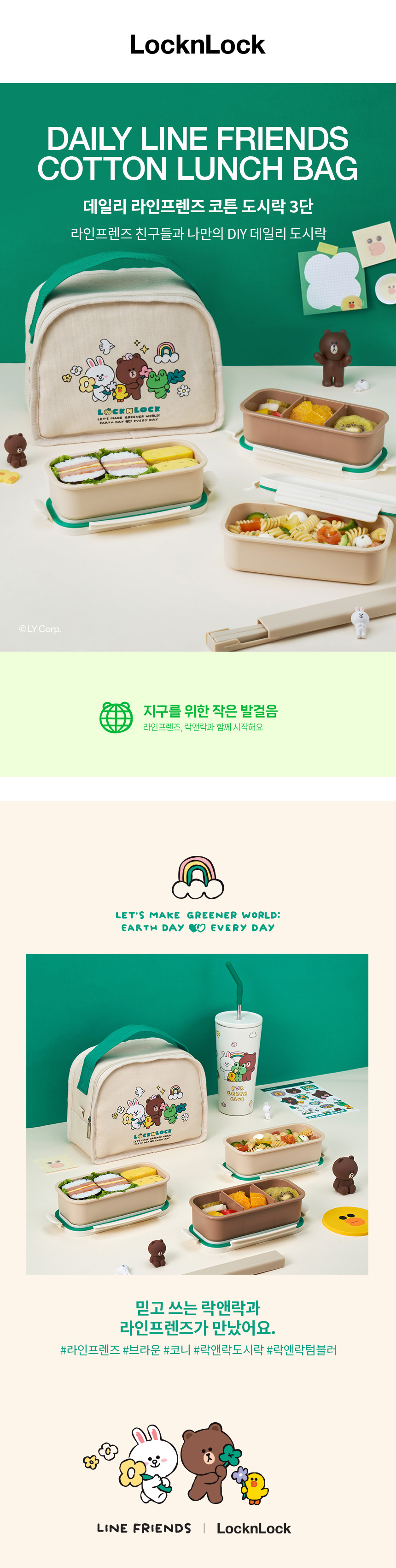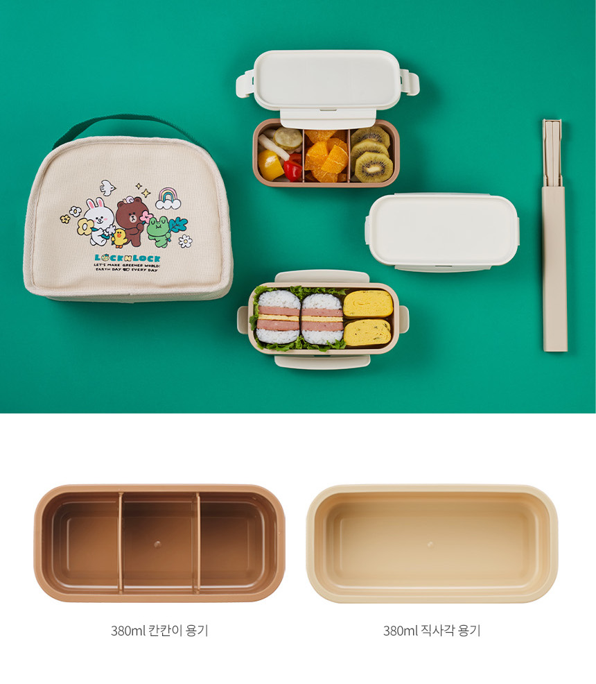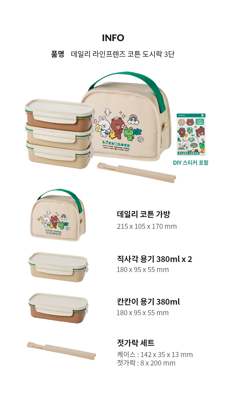 This all-in-one lunch set comes with everything you need to enjoy a meal on the go. The package includes a cotton bag, containers with strong sealing power, and a chopsticks set. The Line Friends sticker adds a personal touch, letting you customize your lunch box to reflect your style.