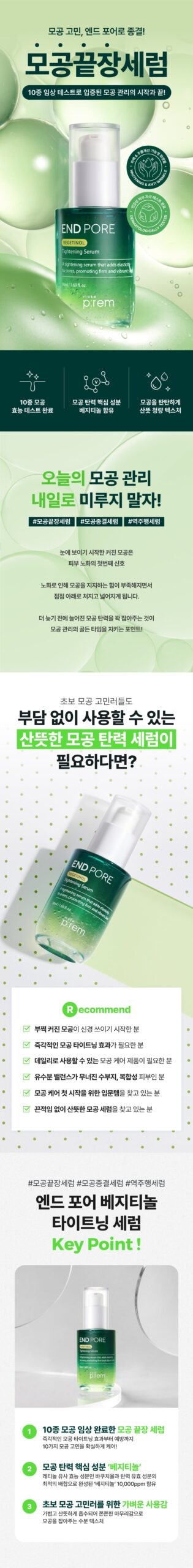 Introducing the make p:rem End Pore Vegetinol Tightening Serum, a groundbreaking solution specifically formulated to target and alleviate pore-related concerns. This product has undergone 10 clinical trials, ensuring its efficacy and safety. It’s an ideal choice for individuals seeking to address large pores, needing immediate pore tightening, daily pore care, oil and water balance, and an introduction to pore care products. Suitable even for complex and sensitive skin types, it has also completed sensitive skin irritation tests and offers whitening and wrinkle improvement benefits.