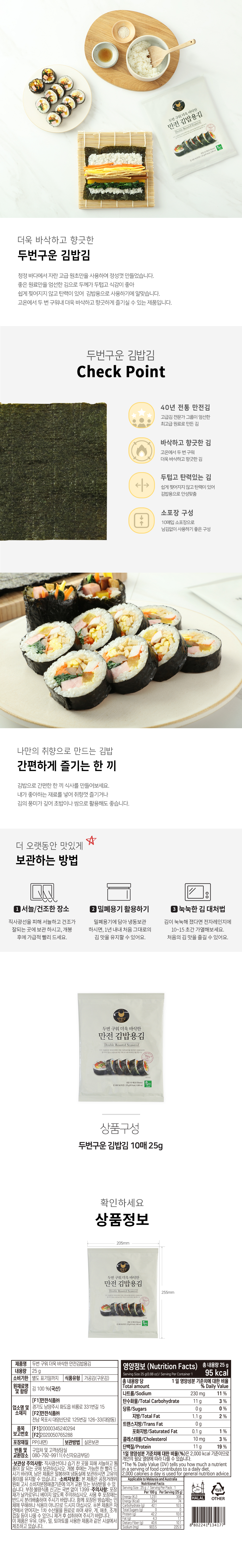 - Contents: 25g per pack, with 10 pieces of twice-baked kimbap seaweed.