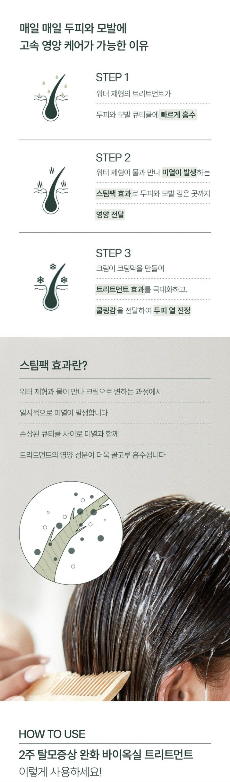 The water formula delivers nutrients deep into the scalp and hair through the steam pack effect, which creates a slight heat when it meets water.