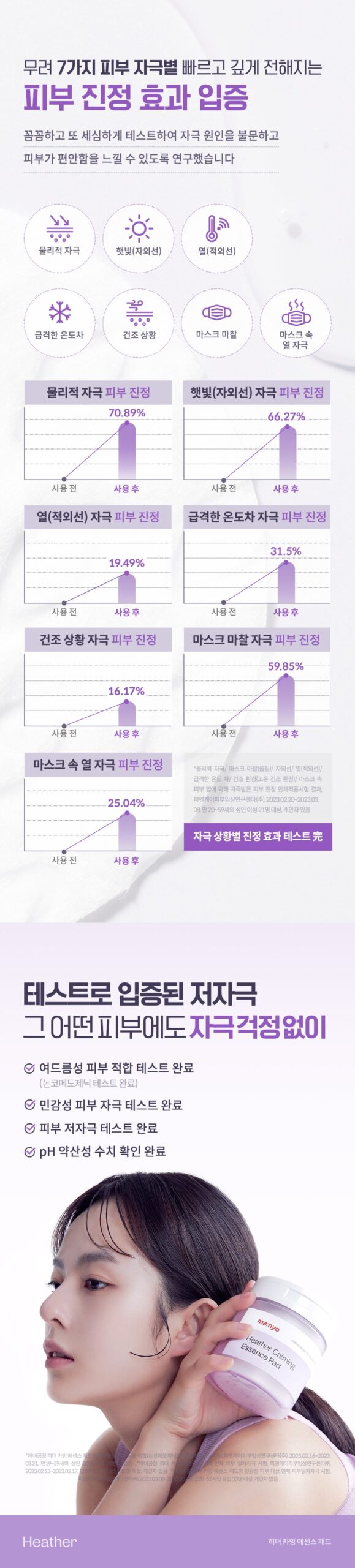 Through as many as seven tests, we created a pad that can calm the skin stably and quickly even in various moments of irritation.