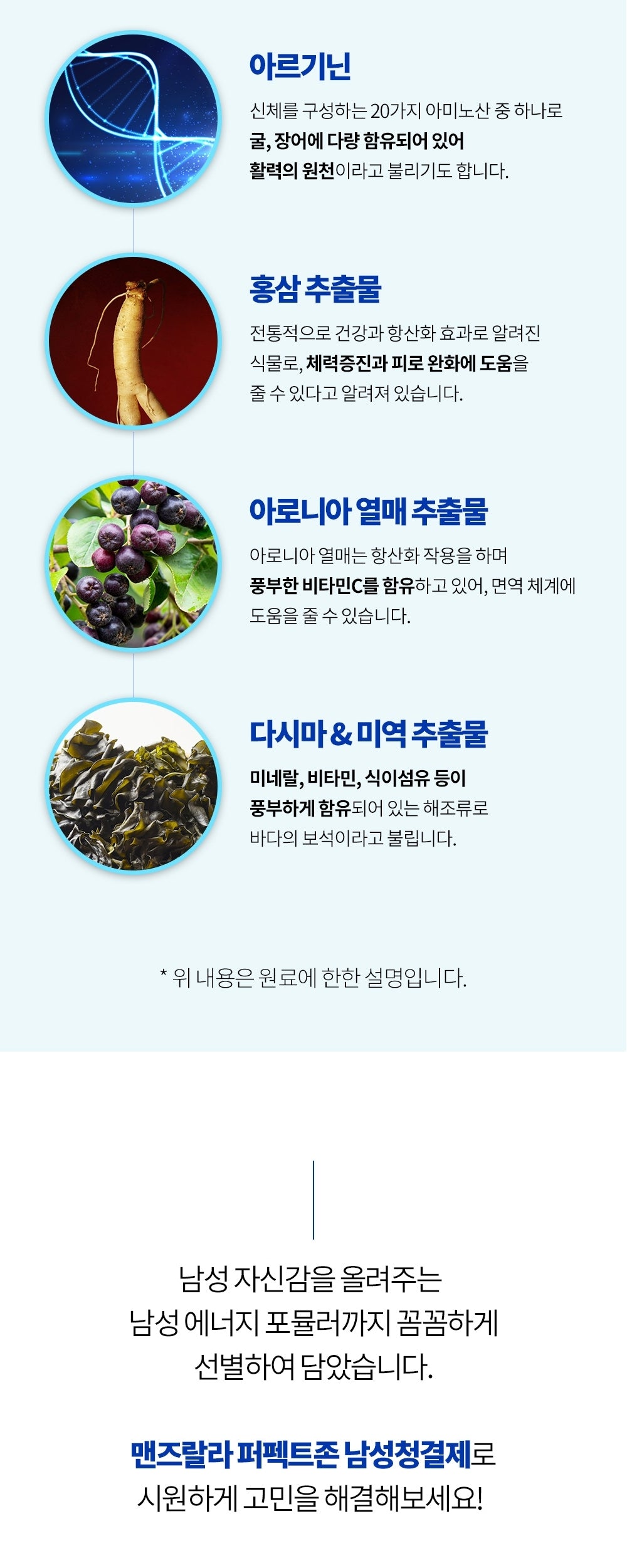 Elevate your natural energy with our Male Energy Formula, incorporating Arginine, Red Ginseng, Aronia Fruit Extract, and Kelp & Seaweed Extract. These ingredients synergize to support vitality, physical strength, and the immune system.